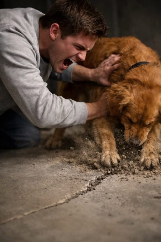 A menhelyről hozott kutyám nem hagyta abba a beton kaparását a pincében; amikor végre feltörtem a padlót, teljesen megrémültem attól, amit odabent találtam 😲😱